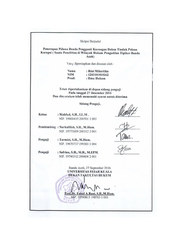 Baca Juga : PENEGAKAN HUKUM OLEH PENGADILAN TINDAK PIDANA KORUPSI TERHADAP KORUPTOR (SUATU PENELITIAN DI PENGADILAN TINDAK PIDANA KORUPSI PADA PENGADILAN NEGERI KELAS I A BANDA ACEH) (Gerry Alidin, 2020)