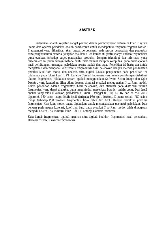 Baca Juga : VALIDASI DISTRIBUSI FRAGMENTASI HASIL PELEDAKAN DENGAN METODE KUZ-RAM DAN SPLIT DESKTOP SOFTWARE PADA PT. LAFARGE HOLCIM, ACEH BESAR (Muhammad Chandra F, 2017)