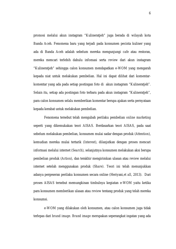 Nanda Khalisa, PENGARUH ELECTRONIC WORD OF MOUTH (E-WOM) AKUN INSTAGRAM “KULINERATJEH” TERHADAP NIAT BELI DENGAN BRAND IMAGE SEBAGAI VARIABEL MEDIASI (STUDI PADA PENGGUNA AKUN INSTAGRAM “KULINERATJEH” DI KOTA BANDA ACEH). Banda Aceh FAKULTAS EKONOMI BISNIS UNIVERSITAS SYIAH KUALA,2016