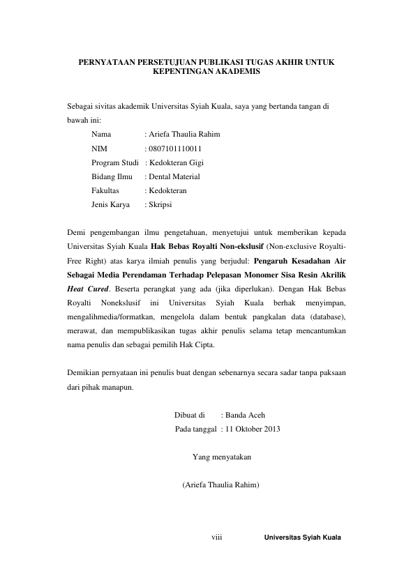 Baca Juga : PENGARUH DURASI PERENDAMAN RESIN AKRILIK HEAT CURED DALAM AKUADES TERHADAP PELEPASAN MONOMER SISA (FAZLIYANDA MARIA HARIDHI, 2016)