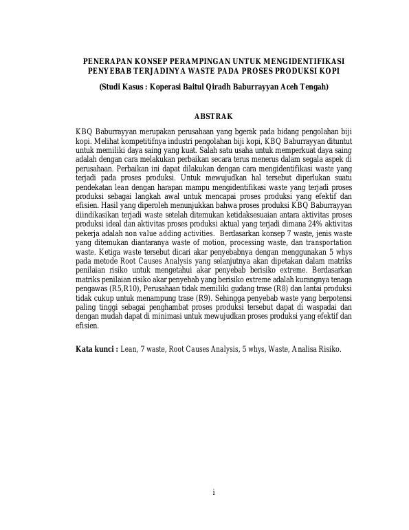 Baca Juga : ENERAPAN KONSEP PERAMPINGAN UNTUK MENGIDENTIFIKASI PENYEBAB TERJADINYA WASTE PADA PROSES PRODUKSI KOPI (STUDI KASUS : KOPERASI BAITUL QIRADH BABURRAYYAN ACEH TENGAH) (Nazila Rahmah Hasan, 2017)