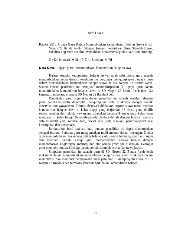 Baca Juga : UPAYA GURU DALAM MENINGKATKANKEMANDIRIAN BELAJAR RNSISWADI SMP NEGERI 1 KUTABARO (Chairiah Lismaya Fitri, 2015)