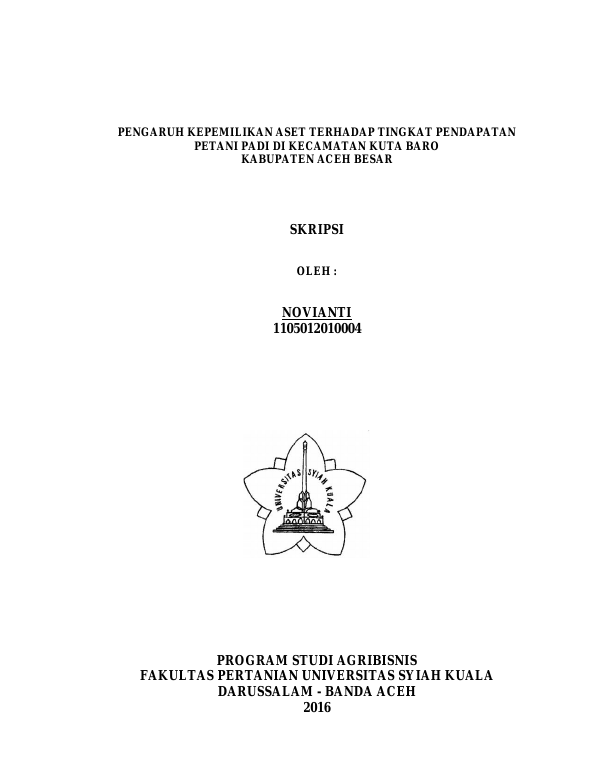 Novianti, PENGARUH KEPEMILIKAN ASET TERHADAP TINGKAT PENDAPATAN PETANI PADI DI KECAMATAN KUTA BARO KABUPATEN ACEH BESAR. Banda Aceh Universitas Syiah Kuala,2017