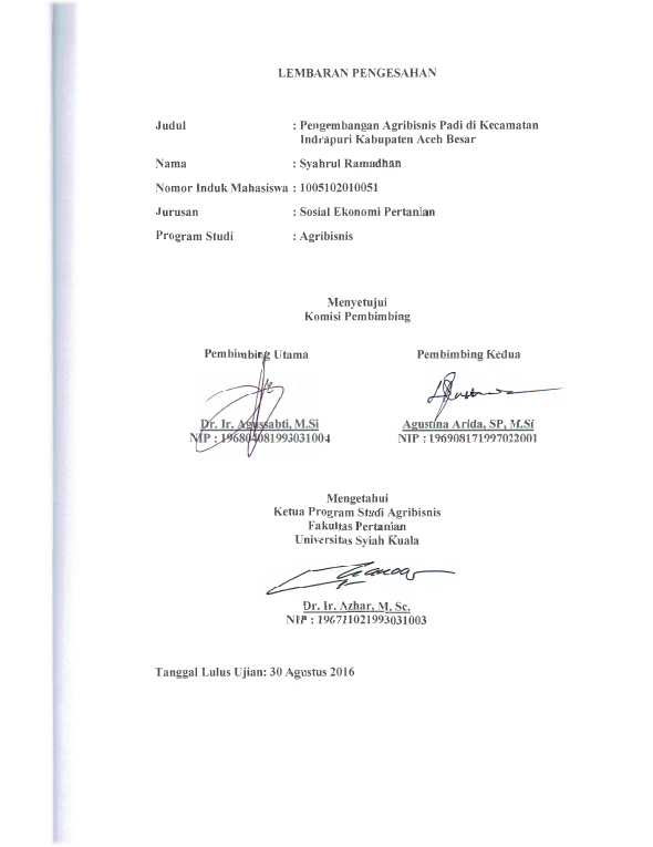Syahrul Ramadhan, PENGEMBANGAN AGRIBISNIS PADI DI KECAMATAN INDRAPURI KABUPATEN ACEH BESAR. Banda Aceh Universitas Syiah Kuala,2017