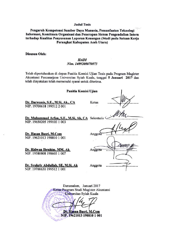 Baca Juga : PENGARUH SISTEM PENGENDALIAN INTERN, TEKNOLOGI INFORMASI, KUALITAS SUMBER DAYA MANUSIA DAN KOMITMEN ORGANISASI TERHADAP KUALITAS LAPORAN KEUANGAN (STUDI PADA SATKER DI LINGKUNGAN KEMENTERIAN AGAMA KAB. ACEH UTARA) (LIZA MUTIANA, 2017)