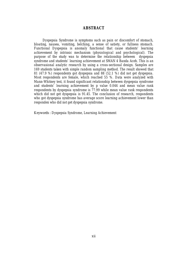 Baca Juga : HUBUNGAN ANTARA STRES DENGAN SINDROMA DISPEPSIA PADA MAHASISWI FAKULTAS KEDOKTERAN UNIVERSITAS SYIAH KUALA BANDA ACEH (Echa Putri Nesia, 2014)