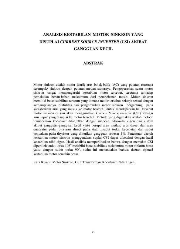Baca Juga : ANALISIS KESTABILAN MOTOR SINKRON YANG DISUPLAI CURRENT SOURCE INVERTER (CSI) AKIBAT GANGGUAN KECIL (Muhammad Asyari, 2013)