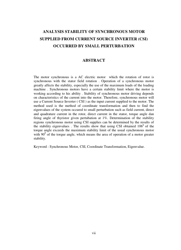 Baca Juga : ANALISIS KESTABILAN MOTOR SINKRON YANG DISUPLAI CURRENT SOURCE INVERTER (CSI) AKIBAT GANGGUAN KECIL (Muhammad Asyari, 2013)