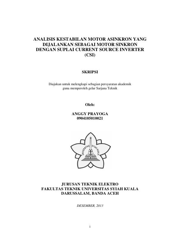 Baca Juga : ANALISIS KESTABILAN MOTOR SINKRON YANG DISUPLAI CURRENT SOURCE INVERTER (CSI) AKIBAT GANGGUAN KECIL (Muhammad Asyari, 2013)