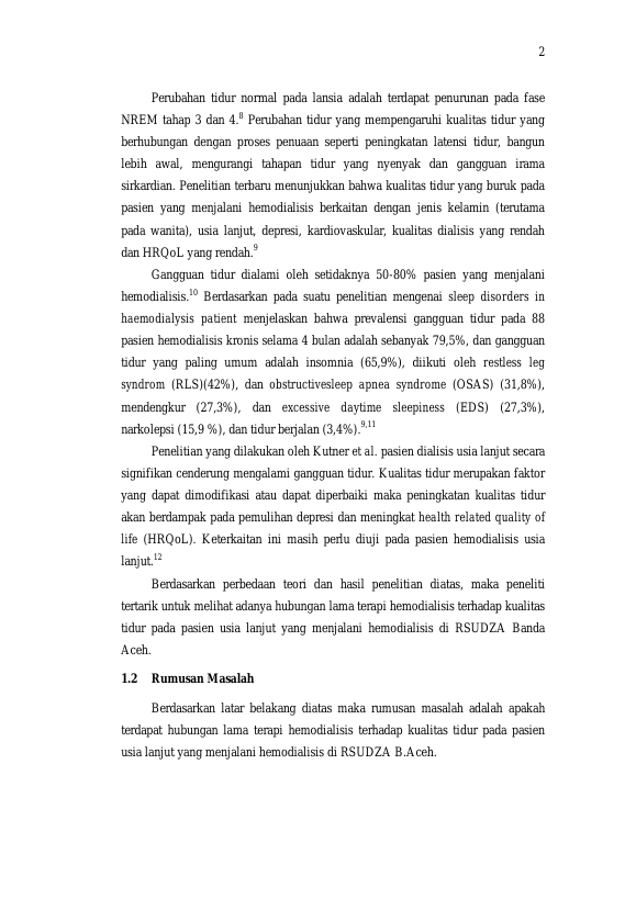Baca Juga : HUBUNGAN LAMA TERAPI HEMODIALISIS TERHADAP KUALITAS TIDUR PADA PASIEN USIA LANJUT YANG MENJALANI HEMODIALISIS DI RSUZA BANDA ACEH (PUTRI CHAIRUNNISA, 2017)