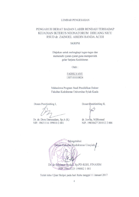 Fadhlyany, PENGARUH BERAT BADAN LAHIR RENDAH TERHADAP KEJADIAN IKTERUS NEONATORUM DI RUANG NICU RSUD DR. ZAINOEL ABIDIN BANDA ACEH. Banda Aceh FAKULTAS KEDOKTERAN UNIVERSITAS SYIAH KUALA,2016
