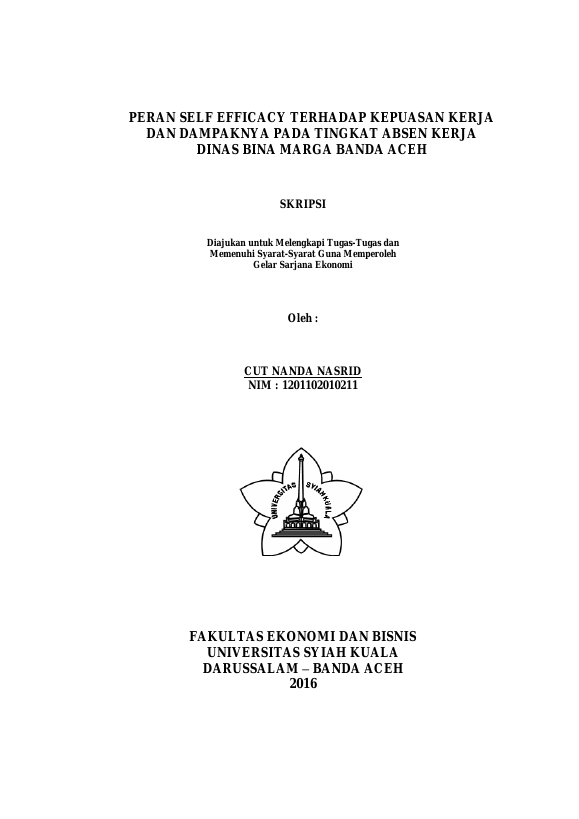 Cut Nanda Nasrid, PERAN SELF EFFICACY TERHADAP KEPUASAN KERJA DAN DAMPAKNYA PADA TINGKAT ABSEN KERJA DINAS BINA MARGA BANDA ACEH. Banda Aceh Universitas Syiah Kuala,2017