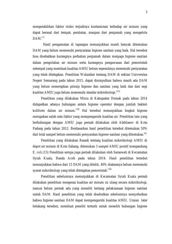 Baca Juga : UJI KUALITAS MIKROBIOLOGI AIR BAKU DAN AIR MINUM ISI ULANG PADA DEPOT AIR MINUM ISI ULANG DI KOTA SABANG (Rachmat Rasadi, 2014)