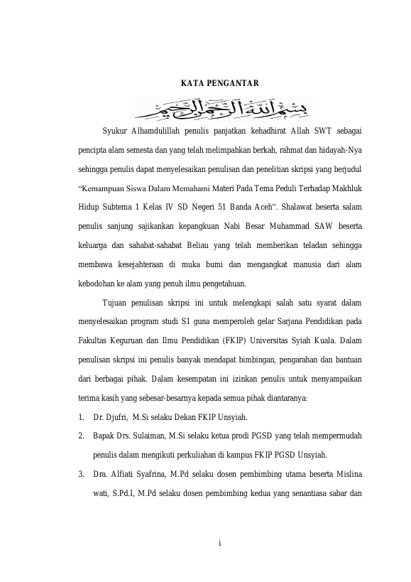 Warzatun Riza, KEMAMPUAN SISWA DALAM MEMAHAMI MATERI PADA TEMA PEDULI TERHADAP MAKHLUK HIDUM SUBTEMA 1 KELAS IV SD NEGERI 51 BANDA ACEH.. Banda Aceh Universitas Syiah Kuala,2017