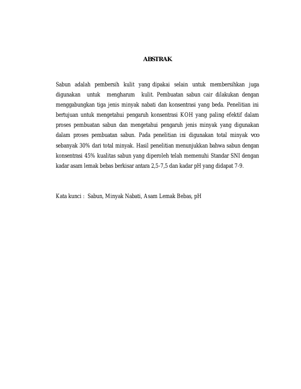Wiki Woronika, PENGARUH KONSENTRASI BASA DAN JENIS MINYAK NABATI TERHADAP KUALITAS SABUN CAIR BERAROMA SEREH WANGI. Banda Aceh FAKULTAS TEKNIK UNIVERSITAS SYIAH KUALA,2017