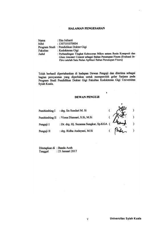 Eka Julianti, PERBANDINGAN TINGKAT KEBOCORAN MIKRO ANTARA RESIN KOMPOSIT DAN GLASS IONOMER CEMENT SEBAGAI BAHAN PENUTUPAN FISURA (EVALUASI IN-VITRO SETELAH SATU BULAN APLIKASI BAHAN PENUTUPAN FISURA). Banda Aceh Fakultas Kedokteran Gigi Universitas Syiah Kuala,2017