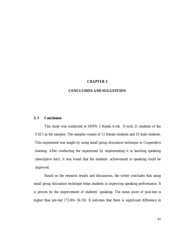 Laili Fitriah, USING SMALL GROUP DISCUSSION TECHNIQUE IN TEACHING SPEAKING (AN EXPERIMENTAL RESEARCH AT SMPN 5 BANDA ACEH). Banda Aceh FAKULTAS KEGURUAN DAN ILMU PENDIDIKAN UNIVERSITAS SYIAH KUALA,2015
