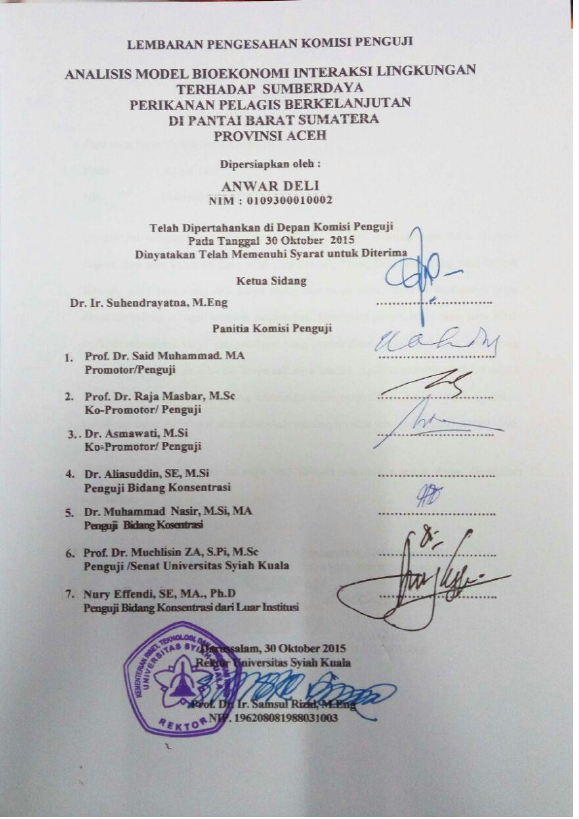 Anwar Deli, ANALISIS MODEL BIOEKONOMI INTERAKSI LINGKUNGAN TERHADAP SUMBERDAYA PERIKANAN PELAGIS BERKELANJUTAN DI PANTAI BARAT SUMATERA PROVINSI ACEH. Banda Aceh Program Doktor Ilmu Ekonomi,2015