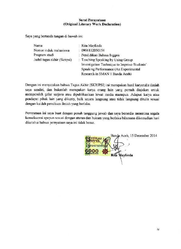 Baca Juga : TEACHING SPEAKING SKILL BY USING GROUP WORK(AN EXPERIMENTAL RESEARCH AT SECOND GRADE STUDENTS OF SMAN 1 GLUMPANG TIGA) (Misbahul Jannah, 2015)