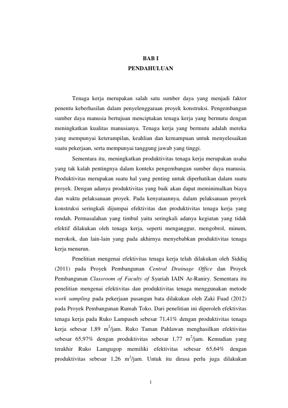 ANALISIS EFEKTIVITAS DAN PRODUKTIVITAS TENAGA KERJA MENGGUNAKAN METODE WORK SAMPLING PADA PEKERJAAN PASANGAN BATA ( Studi Kasus Pada Proyek Pembangunan Perumahan Tipe 70) ANALISIS EFEKTIVITAS DAN PRODUKTIVITAS TENAGA KERJA MENGGUNAKAN METODE WORK SAMPLING PADA PEKERJAAN PASANGAN BATA ( Studi Kasus Pada Proyek Pembangunan Perumahan Tipe 70). Banda Aceh Fakultas Teknik,2013
