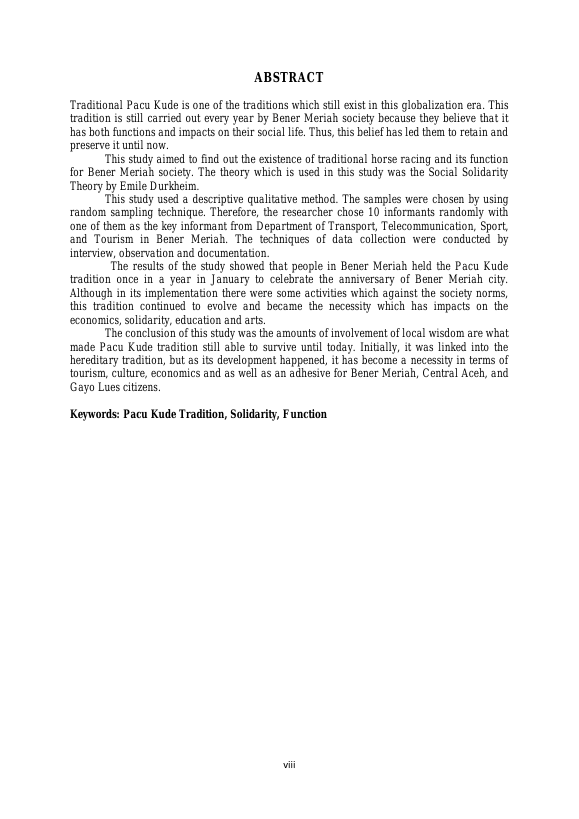 Amalia Pintenate, PACUAN KUDA DALAM KAJIAN SOSIOLOGI (STUDI PENELITIAN DI KABUPATEN BENER MERIAH)33. Banda Aceh Universitas Syiah Kuala,2017