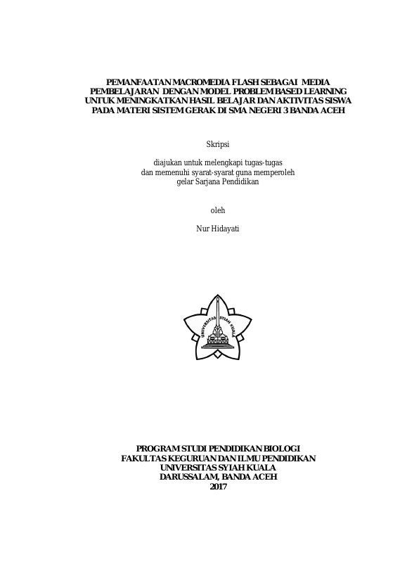 Nurhidayati, PEMANFAATAN MACROMEDIA FLASH SEBAGAI MEDIA PEMBELAJARAN DENGAN MODEL PROBLEM BASED LEARNING UNTUK MENINGKATKAN HASIL BELAJAR DAN AKTIVITAS SISWA PADA MATERI SISTEM GERAK DI SMA NEGERI 3 BANDA ACEH. Banda Aceh FAKULTAS KEGURUAN DAN ILMU PENDIDIKAN UNIVERSITAS SYIAH KUALA,2017