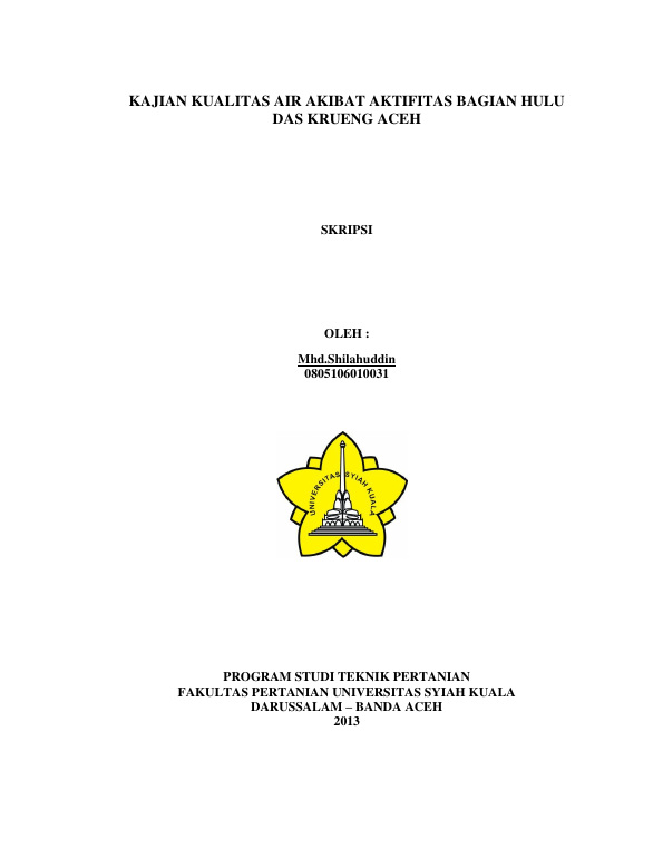 Baca Juga : KAJIAN KUALITAS AIR AKIBAT AKTIFITAS BAGIAN HULU DAS KRUENG ACEH (MHD SHILAHUDDIN, 2014)