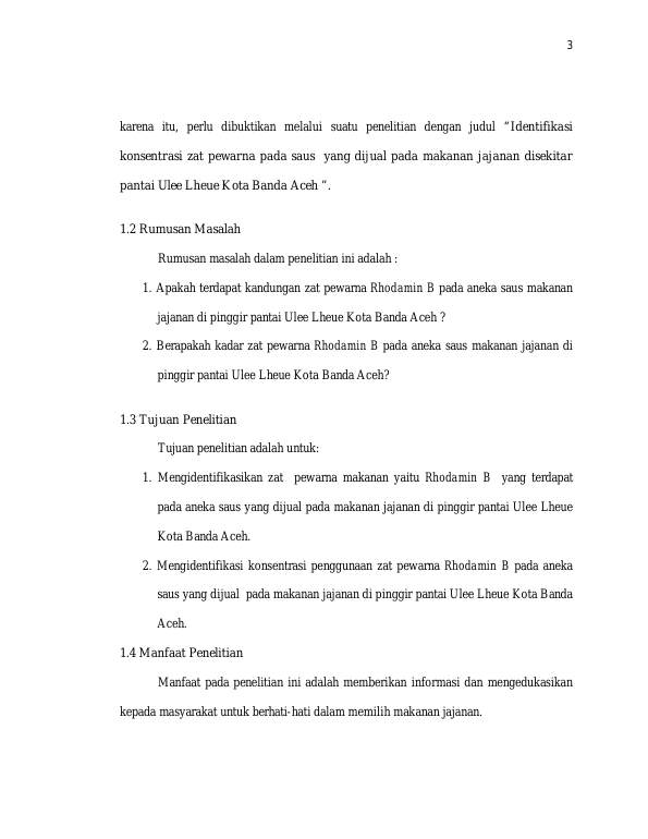 Baca Juga : ANALISIS KADAR PEWARNA RHODAMIN B PADA MAKANAN YANG BEREDAR DI KOTA BANDA ACEH (AYURHA MAZAYYAN, 2018)