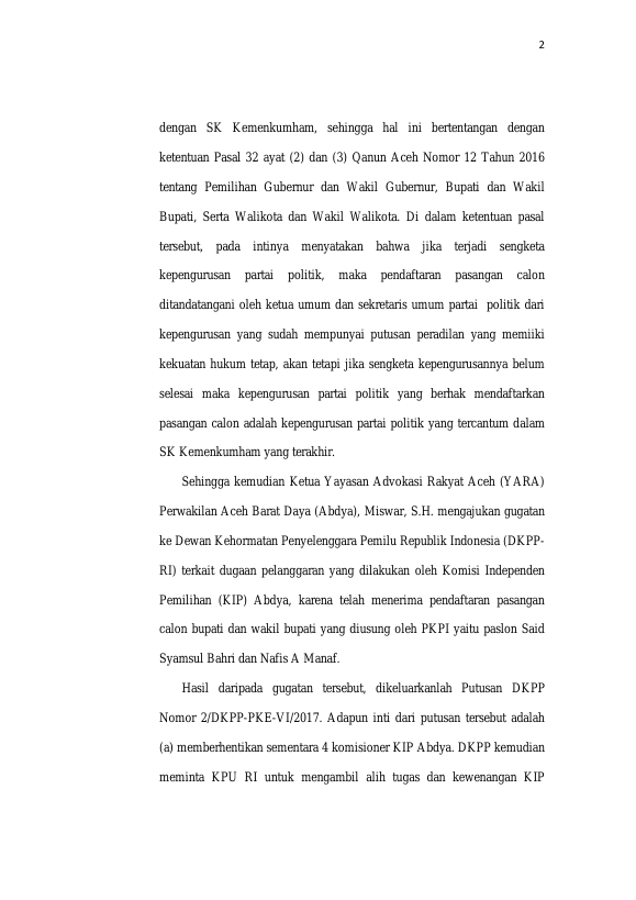 Baca Juga : TINJAUAN YURIDIS TERHADAP PEMBATALAN PASANGAN CALON BUPATI DAN WAKIL BUPATI ABDYA YANG DILAKUKAN OLEH KIP ACEH (Haikal Luthfi, 2017)