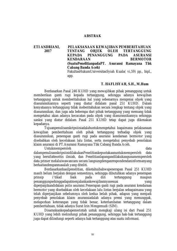 Baca Juga : PENOLAKAN KLAIM ASURANSI KENDERAAN BERMOTOR RNDENGAN OBJEK PERTANGGUNGAN TRUKRN(SUATU PENELITIAN DI KOTA BANDA ACEH) (Darul Mahdi, 2014)