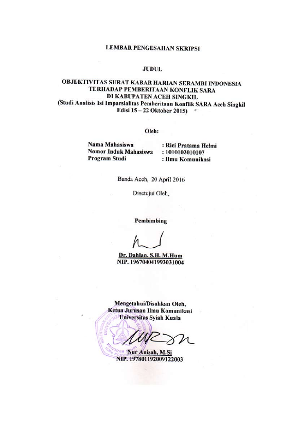 Baca Juga : BENTUK PEMBERITAAN KAMPANYE POLITIK PEMILIHAN KEPALA DAERAH ACEH DI HARIAN SERAMBI INDONESIA (Afrizal, 2014)