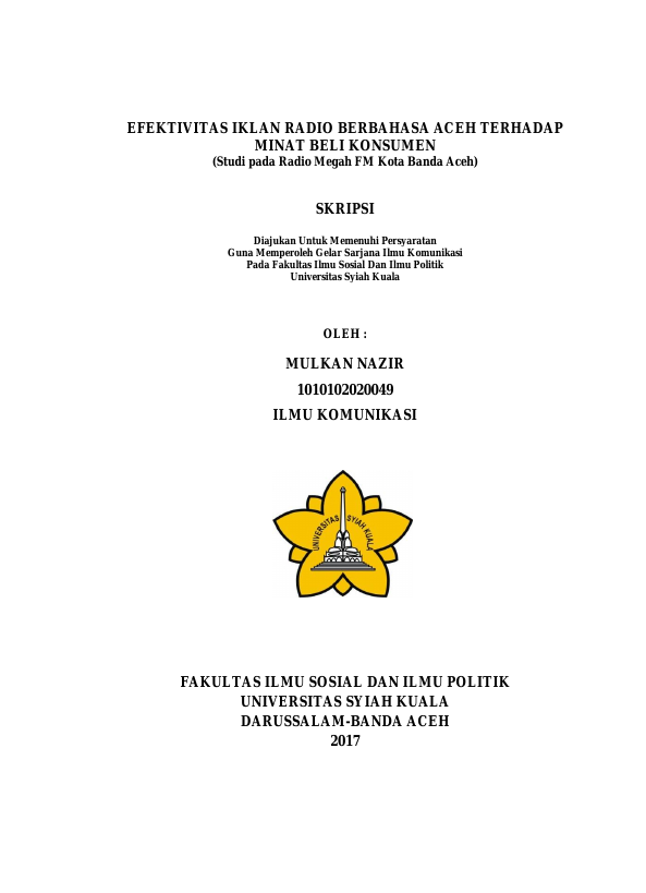 Baca Juga : PERSEPSI MASYARAKAT TERHADAP PENGGUNAAN BAHASA ACEH DALAM IKLAN KOMERSIAL DI RADIO MEUGAH FM DAN HUBUNGANNYA DENGAN MINAT BELI KONSUMEN (STUDI TERHADAP MASYARAKAT GAMPONG MERDUATI KECAMATAN KUTARAJA KOTA BANDA ACEH) (Muhammad Iqbal, 2017)
