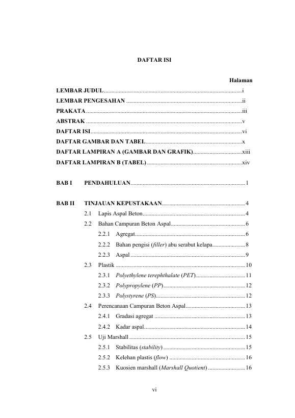 Baca Juga : PENGARUH SUBSTITUSI KOMBINASI LIMBAH PLASTIK PADA ASPAL PEN. 60/70 SERTA PENGGUNAAN ABU CANGKANG KELAPA SAWIT SEBAGAI FILLER TERHADAP KINERJA CAMPURAN LASTON LAPIS AUS (AC-WC) (Roni Agusmaniza, 2016)
