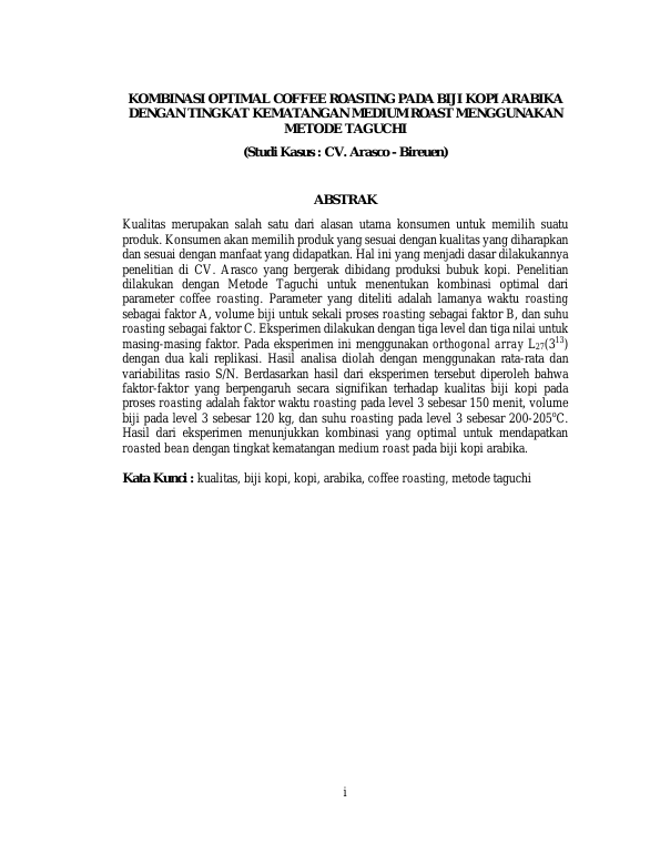 Baca Juga : PENGARUH DERAJAT ROASTING DAN KOMPOSISI PENAMBAHAN KOPI ARABIKA PADA KOPI ROBUSTA TERHADAP TINGKAT KESUKAAN KONSUMEN (TIRNI GEMASIH, 2018)