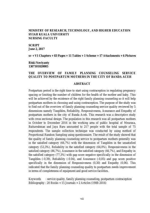 Baca Juga : GAMBARAN KUALITAS PELAYANAN PROGRAM KELUARGA BERENCANA PUSKESMAS JEULINGKE KECAMATAN SYIAH KUALA BANDA ACEH TAHUN 2011 (Ramlah, 2023)