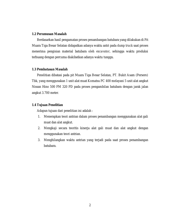 Irfan Zuhdiansyah, PENERAPAN TEORI ANTRIAN PADA PROSES PENAMBANGAN BATUBARA MENGGUNAKAN ALAT GALI MUAT KOMATSU PC 400 DAN ALAT ANGKUT HINO 500 FM 320 PD DI SITE MUARA TIGA BESAR SELATAN PT. BUKIT ASAM, TANJUNG ENIM, SUMATERA SELATAN. Banda Aceh Fakultas Teknik,2017