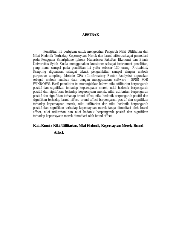 Khairunnisa, PENGARUH NILAI UTILITARIAN DAN NILAI HEDONIK TERHADAP KEPERCAYAAN MEREK DAN BRAND AFFECT SEBAGAI PEMEDIASI PADA PENGGUNA SMARTPHONE IPHONE MAHASISWA FAKULTAS EKONOMI DAN BISNIS UNIVERSITAS SYIAH KUALA. Banda Aceh FAKULTAS EKONOMI BISNIS UNIVERSITAS SYIAH KUALA,2017
