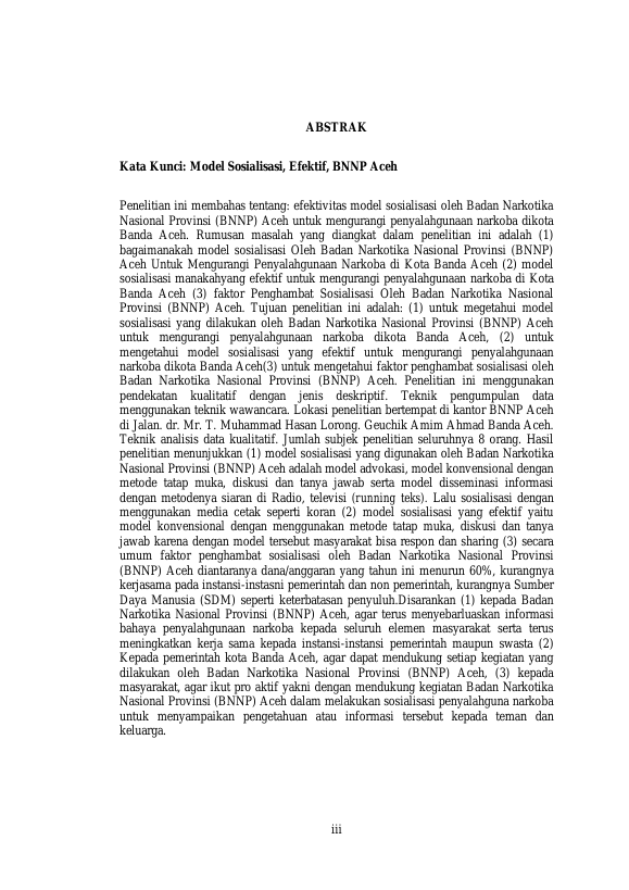 DESWITA, EFEKTIVITAS MODEL SOSIALISASI OLEH BADAN NARKOTIKA NASIONAL PROVINSI (BNNP) ACEH UNTUK MENGURANGI PENYALAHGUNAAN NARKOBA DI KOTA BANDA ACEH (SUATU PENELITIAN DI KANTOR BNNP ACEH). Banda Aceh FAKULTAS KEGURUAN DAN ILMU PENDIDIKAN UNIVERSITAS SYIAH KUALA,2017