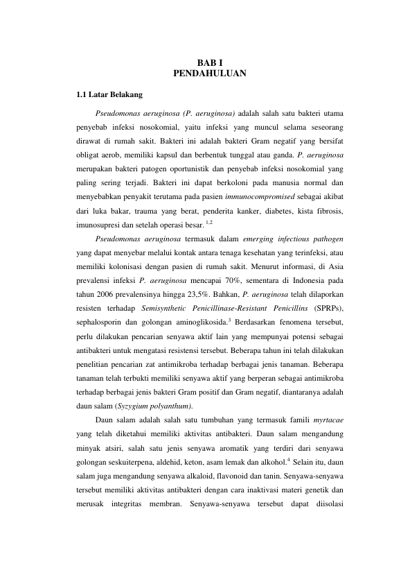 Baca Juga : PENENTUAN KONSENTRASI HAMBAT MINIMAL DAN KONSENTRASI BUNUH MINIMAL EKSTRAK ETANOL DAUN SALAM (SYZYGIUM POLYANTHUM) TERHADAP PERTUMBUHAN PSEUDOMONAS AERUGINOSA ISOLAT KLINIS (Fingga Prahasti Nasution, 2016)
