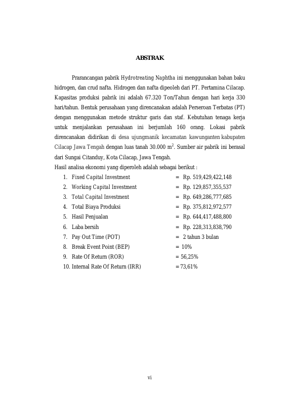 Baca Juga : PRARANCANGAN PABRIK HYDROTREATING NAPHTHA DENGAN KAPASITAS PRODUKSI 67.320 TON/TAHUN (RITA NADIRA, 2017)