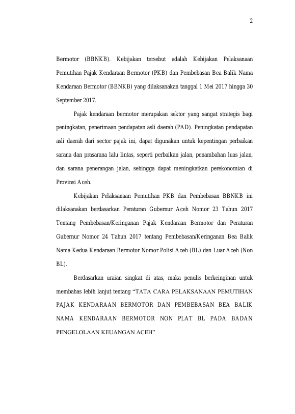 Baca Juga : TATA CARA PELAKSANAAN PEMUTIHAN PAJAK KENDARAAN BERMOTOR DAN PEMBEBASAN BEA BALIK NAMA KENDARAAN BERMOTOR NON PLAT BL PADA BADAN PENGELOLAAN KEUANGAN ACEH BANDA ACEH (MIFTA FITRIA, 2017)