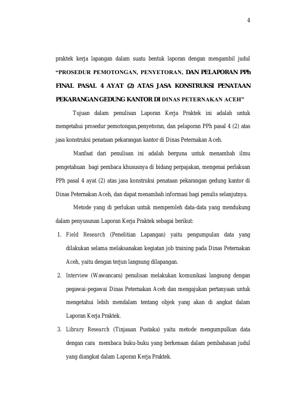 Baca Juga : PROSEDUR PEMOTONGAN DAN PENYETORAN PPH PASAL 4 AYAT (2) ATAS JASA KONSTRUKSI PADA PT SAMANA CITRA AGUNG BANDA ACEH (TOMY ARIANDI, 2018)