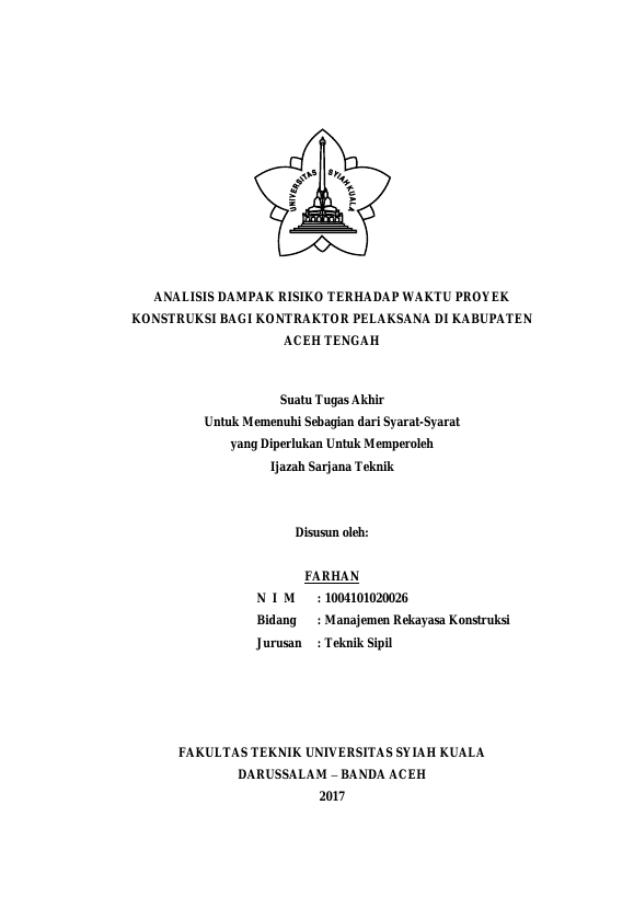 Baca Juga : KAJIAN DAMPAK RISIKO TERHADAP BIAYA PROYEK KONSTRUKSI PADA PERUSAHAAN KECIL DAN MENENGAH DI KABUPATEN ACEH TENGAH (Riza Sachfan, 2018)