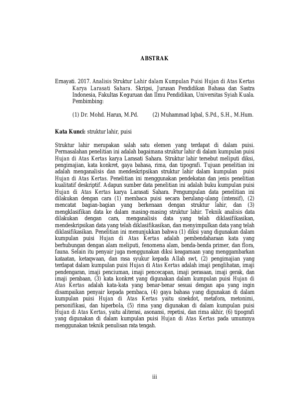 Baca Juga : STRUKTUR BATIN PUISI KARYA ROSNI IDHAM DALAM ANTOLOGI SASTRA BULIR MUTIARA PANTAI BARAT (Wahyu Linda, 2017)
