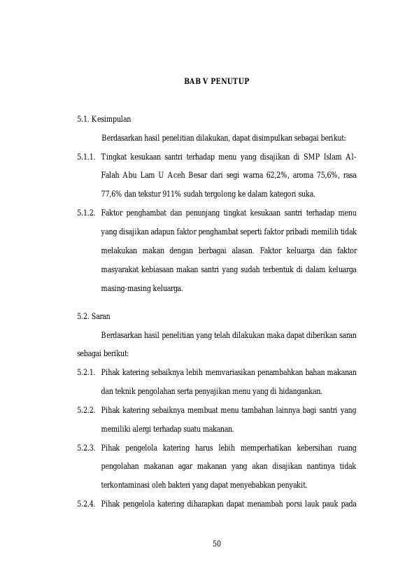 Baca Juga : TINGKAT KEPUASAN SISWA TERHADAP MENU YANG DISAJIKAN DI SEKOLAH MENENGAH PERTAMA ISLAM TERPADU AL-FITYAN SCHOOL ACEH TAHUN 2014 (Intan Meiliza, 2015)