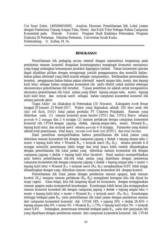 Baca Juga : PERTUMBUHAN ITIK LOKAL JANTAN DENGAN PEMBERIAN TEPUNG AMPAS TAHU, MENIR, DAN KULIT TELUR SEBAGAI BAHAN CAMPURAN KONSENTRAT PADA PERIODE FINISHER (ISMATURRAHMI, 2017)