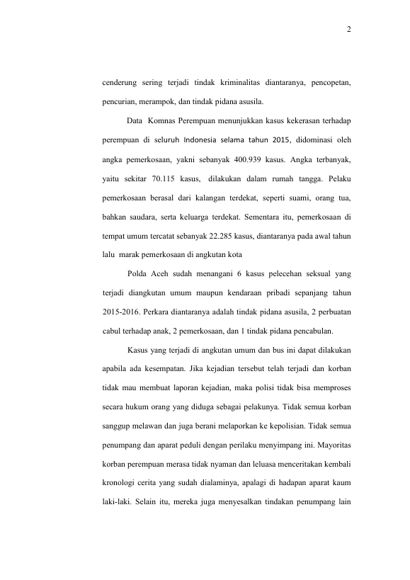 HAYATUL MAGHFIRAH, TINJAUAN VIKTIMOLOGI TINDAK PIDANA PENCABULAN TERHADAP PEREMPUAN DI DALAM ANGKUTAN UMUM (SUATU PENELITIAN DI WILAYAH HUKUM POLDA ACEH). Banda Aceh Fakultas Hukum Universitas Syiah Kuala,2017