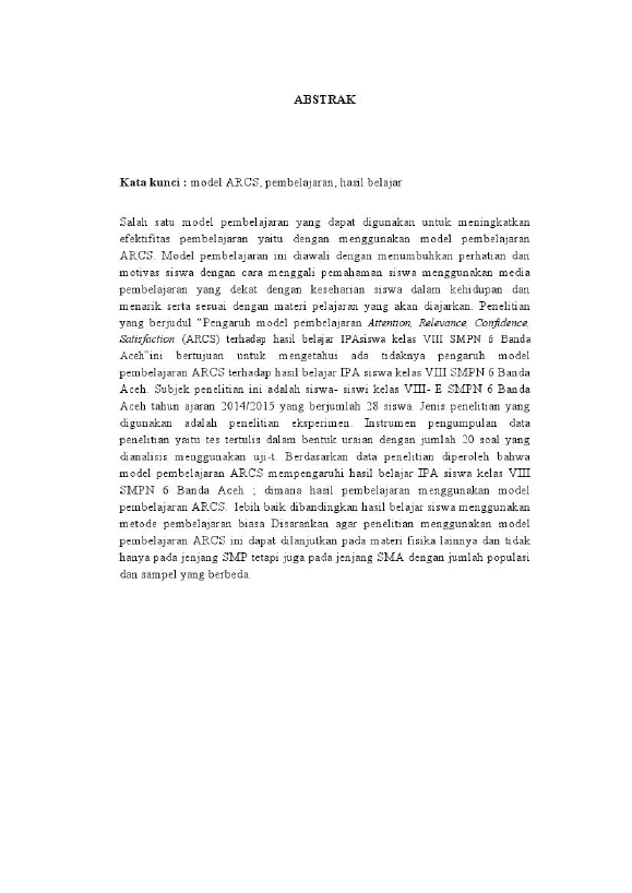 Baca Juga : PENGARUH MODEL PEMBELAJARAN ATTENTION, RELEVANCE, CONFIDENCE, SATISFACTION (ARCS) TERHADAP HASIL BELAJAR IPA SISWA KELAS VIII SMPN 6 BANDA ACEH (Zulfina, 2017)