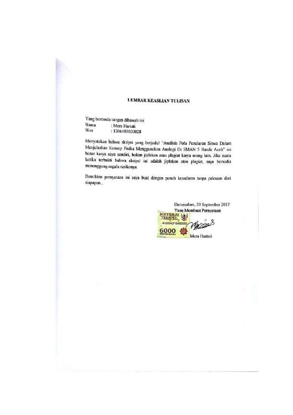 Mera Hartati, ANALISIS POLA PENALARAN SISWA DALAM MENJELASKAN KONSEP FISIKA MENGGUNAKAN ANALOGI DI SMAN 5 BANDA ACAEH. Banda Aceh Universitas Syiah Kuala,2017