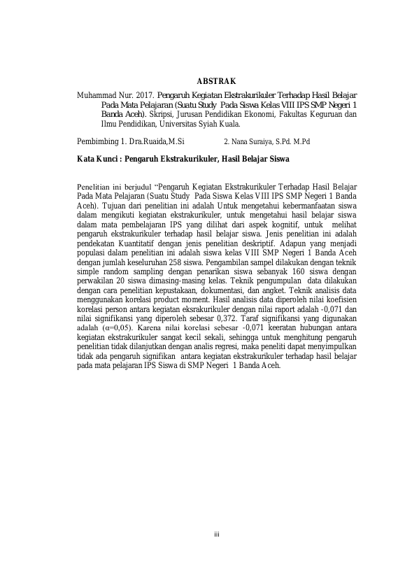 Baca Juga : PERBANDINGAN PRESTASI BELAJAR MATA PELAJARAN IPS SISWA KELAS VIII SMP NEGERI 6 DAN SMP NEGERI 1 BANDA ACEH TAHUN AJARAN 2013 (aja syarifah ridhka, 2014)